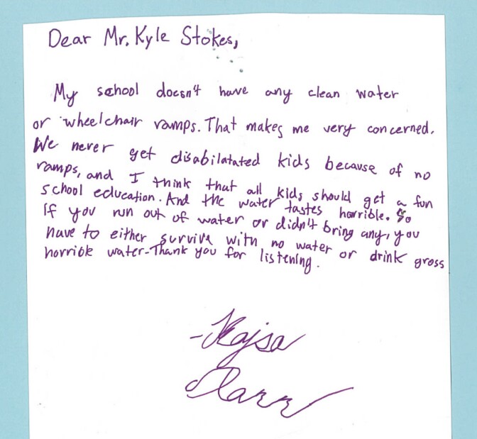 "My school doesn't have any clean water," fourth-grader Kajsa Darr of Clifford Elementary School in Echo Park wrote. "That makes me very concerned. That water tastes horrible."