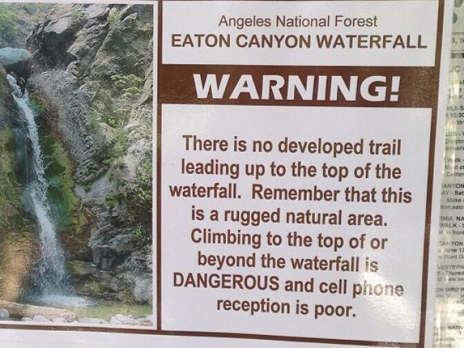 Jon Stillman — who’s hiked Eaton Canyon for two decades — said there should be signs farther up the trail. “I’ve never seen any," he said. "It’s too far back in the canyon.”