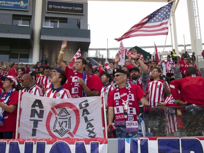 This is especially noticeable in the sections where the support groups sit. Most of the Galaxy chants are in English, while Chivas fans tend to chant in Spanish.