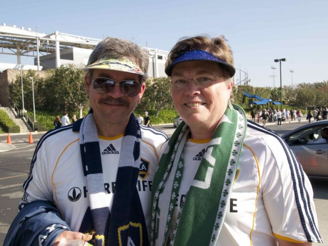 Susan Brand, outfitted in all forms of Galaxy paraphernalia, came from Torrance to see the game with her husband. They both caught the soccer bug years ago when their daughter started playing. She thinks the rivalry might actually turn into something exciting to watch.