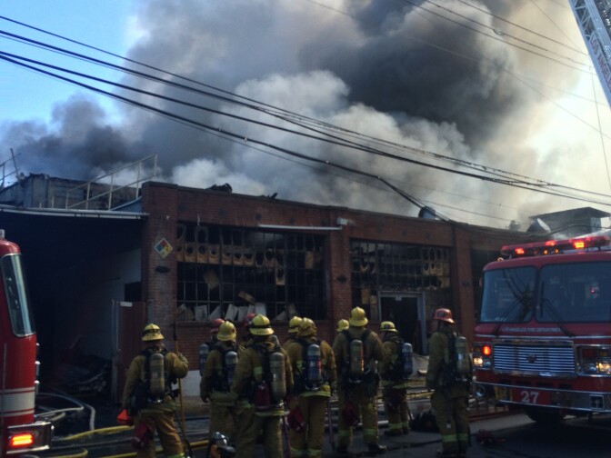 Los Angeles firefighters are battling a fire at a commercial structure in Hollywood Sunday morning. The fire broke out shortly around 9 a.m. at 1001 N. Orange Drive, according to the Los Angeles Fire Department.