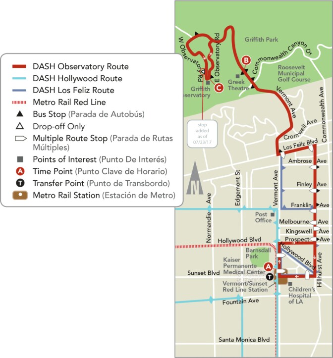 Extra DASH service will be running from the Red Line station up Hillhurst Avenue to the observatory starting at 8 a.m., and, of course, it’s always a nice spot for a hike on foot.