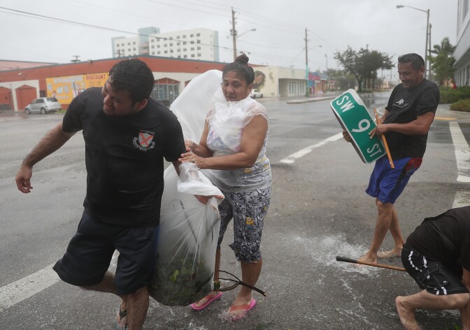 A flooded street is seen in the Brickell area of downtown as Hurricane Irma passes through Miami.