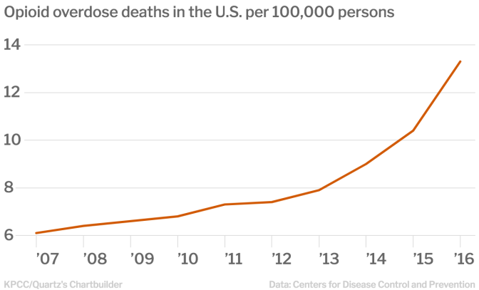 In 2016, more than 42,000 people in the U.S. died of opioid-related overdoses, including at least 2,000 in California, according to the most recent data available from the Centers for Disease Control and Prevention and the California Department of Public Health.