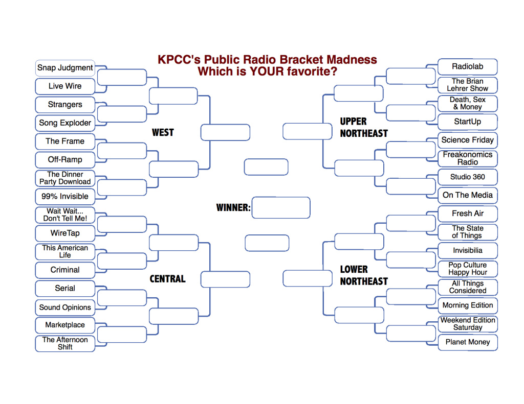KPCC's 2015 Public Radio Bracket Madness is live — vote here for your favorite show