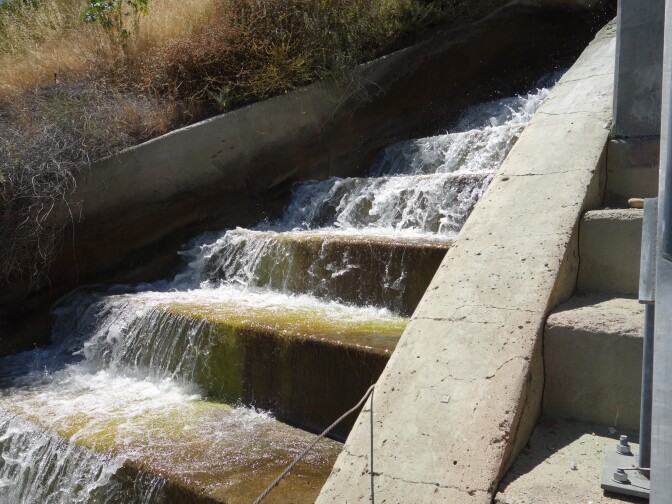 It's at that point where water in the aqueduct tumbles down an open-air staircase of concrete blocks called the Cascades. It's meant to slow the pace of the water as it rushes downhill, but the speed of the flow is still about 700 cubic feet per second. A cubic foot is about the size of a basketball.