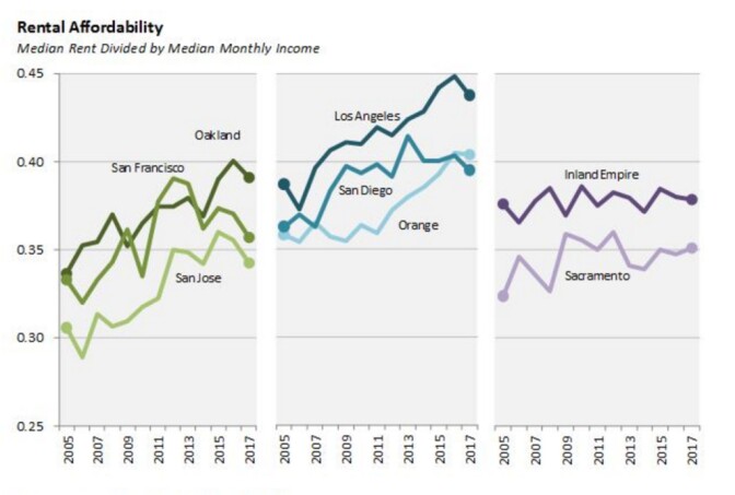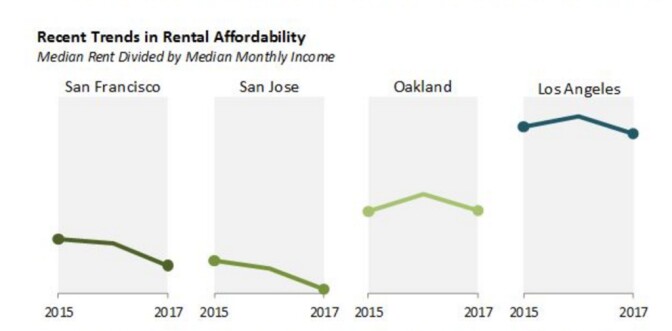 Almost all of California's eight major metros posted improvements in rental affordability.