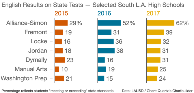 But at Locke, those marks decreased in 2017 — to 39 percent in English and just 8 percent in math.