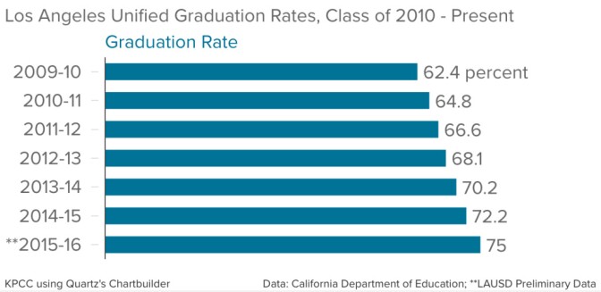 LA Unified graduation rate continues steady climb, now at 75 percent