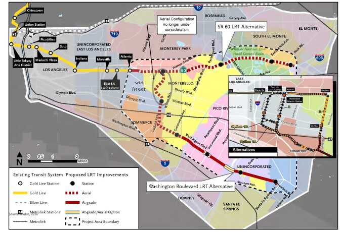 Metro narrowing route options for rail line from Union Station to Artesia
