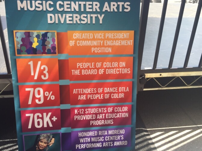 Since Moore stepped in as CEO last October, she’s pioneered some big changes. The Music Center’s board of directors now has one-third minority members, up from 17 percent. She's created a new executive position – vice president of community engagement – to increase outreach, and developed more cultural programming that’s drawing in audiences of color.