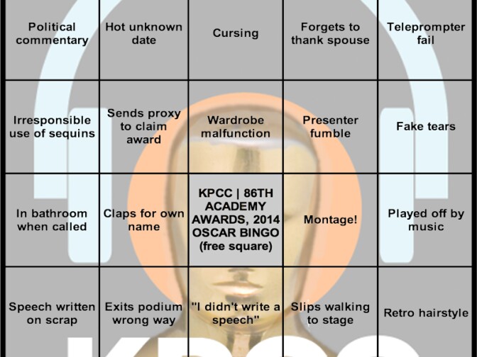 The Super Bowl of the silver screen. The World Series of world premieres. The Cadillac of career vehicles. The 86th Annual Academy Awards are almost here. So replace the ink cartridge and chill the cheese plate. Here are the party printables you will need to play along with Sunday's show. (You can brush up on the nominees with KPCC's full coverage of the Oscars 2014 here.)