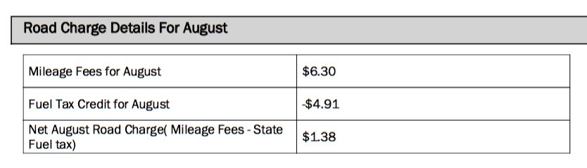 The pilot program is a dry run, so I don't actually have to pay anything. But my bill estimates how much I would owe the state based on the number of miles I've driven.