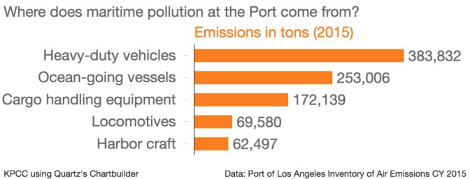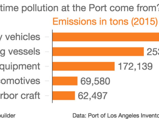 Heavy duty trucks are the biggest polluters, followed by ships and then cargo-handling equipment like forklifts and tractors.
