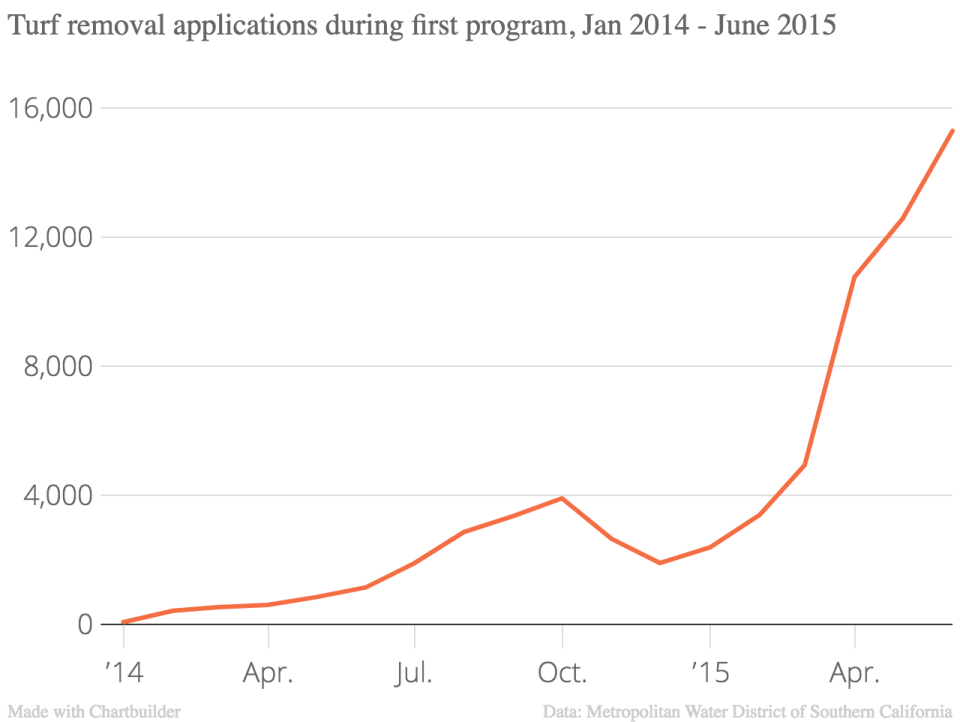 Last time MWD’s program was so popular, it lasted just 17 months before the board shut it down in July 2015. By then, the agency had paid out $239 million in rebates to more than 46,000 people and ripped out over 100 million square feet of grass – almost 4 square miles.