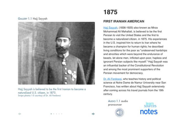 In the book, Ardalan found the first Iranian-American on record — Hajj Sayyah, a world traveler who went to New York, then to San Francisco.