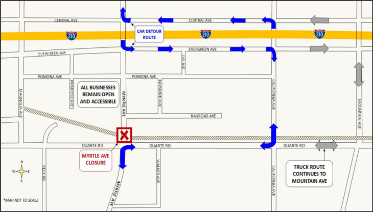 - Myrtle Avenue: Myrtle Avenue will be closed just north of Duarte Road near the railroad crossing for approximately four months. Read More