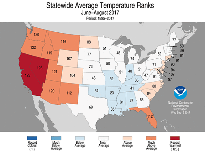 SoCal – from Santa Barbara to San Diego – saw searing triple digit temperatures, but the average temperature was only the 6th hottest on record at 71.5 degrees. 1981 held on to top honors with 72.9.