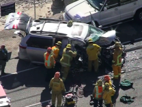 Tools were used to cut the two people out of their cars after the crash blocked traffic in both directions. They were airlifted to the hospital.