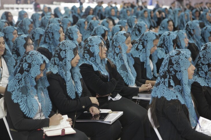 La Luz traditions are unfamiliar to many in the U.S. Churches offer three prayer services each day. Male and female worshippers sit on opposite sides of churches. Women wear long skirts and cover their heads with lace veils. Church members aren't supposed to drink, smoke or gamble. The church does not celebrate Christmas or Easter.