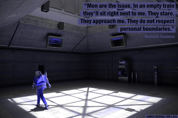 "Men are the issue. In an empty train they'll sit right next to me. They stare. They approach me. They do not respect personal boundaries. I'd like to see a car designated for women and children, or more Metro officers present. The only times I see them are when they're checking fares."