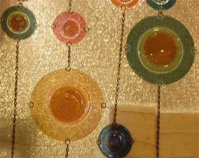 Let’s talk fonts. Your selection of fonts and the colors of those fonts are carefully, deliberately selected for your novels. The names of the fonts are important. Sans Serif was important for time in Only Revolutions. Readability is obviously a factor. The colors are probably more influenced by designers and painters, simply because there’s a specificity to the symbolic nature of colors. The gold (used in Only Revolutions) was a huge issue. (Mark then references the stained glass piece hanging in Canter’s. It reminds him of Sam and Hailey. Stained glass piece at right.)