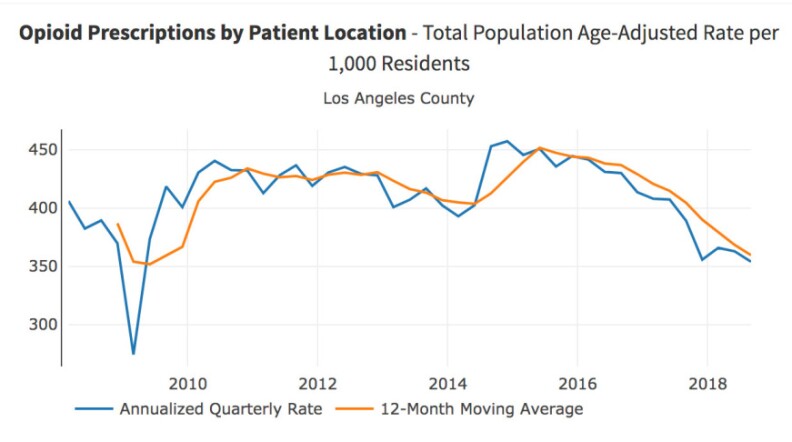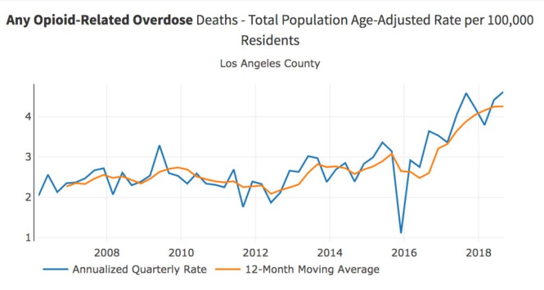 According to the state opioid dashboard, L.A. County's overdose rate per capita is one of the lowest in the state.