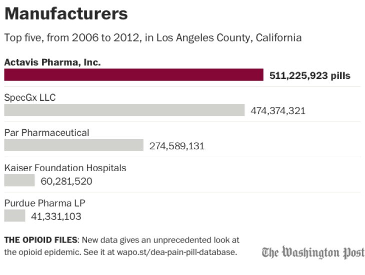 In comparison, Los Angeles County received the fifth lowest number of pills per capita in the state during the same time period -- 22 pills per person per year.