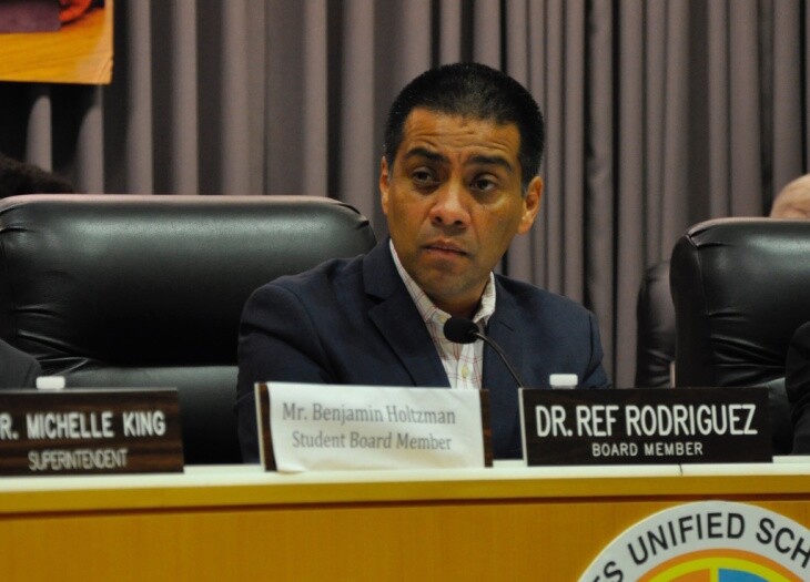 Ref Rodriguez left an empty seat on the Los Angeles Unified School Board after he pleaded guilty to felony charges and resigned in July. On Tuesday, the six remaining LAUSD board members met to decide how to fill that seat.