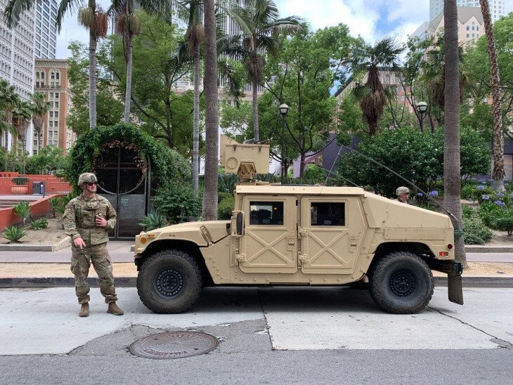 National Guard headed to LAPD HQ bringing water and MRE’s (as @chavatweets1 noticed) pic.twitter.com/Bpx5ziLRKe