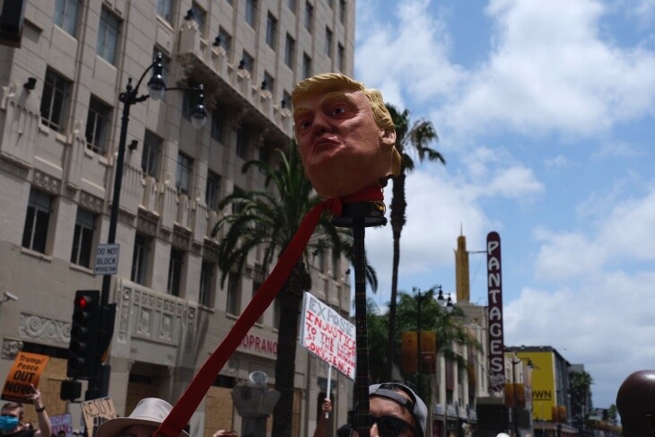 Hollywood and Vine right now. It’s about BLM but also about the White House. “Trump/Pence Out Now” pic.twitter.com/OcAi1CPpc8