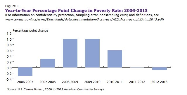 There's not really any kind of silver lining but the not-quite-good news from the Census is that overall poverty rates didn't change much around the country and actually went down a bit. But this comes after four years of the poverty rate ticking up and one year of the rate stabilizing: