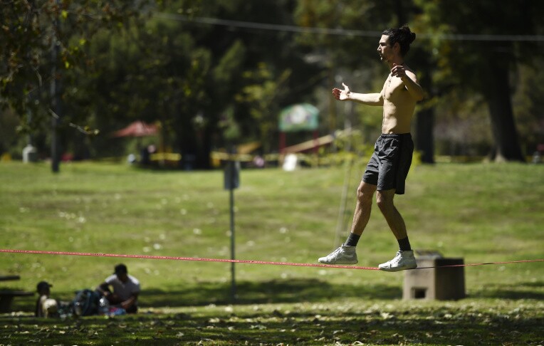May we all have as much zen as Liam Watkins, shown here balancing on a slack line at Griffith Park.