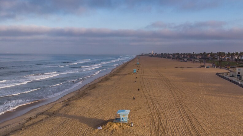 Some residents of Orange County still aren't happy about it, but this photo of an empty Huntington Beach is about as tranquil as it gets.