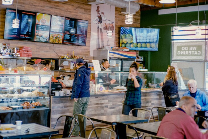 Malik says the coronavirus has slowed business but he's taking it in stride. Since mid-March, Namaste Spiceland has been functioning as a grocery store and takeout-only cafe. Workers behind the counters are now protected by sneeze guards and only six to seven customers are allowed inside the store at a time. Signs and markings on the floor remind visitors to stay six feet apart. Malik now sells toilet paper, hand wipes and hand sanitizer. When bigger supermarket chains sold out of those precious goods, Namaste Spiceland had them in stock. He also continues to offer grocery and meal delivery.