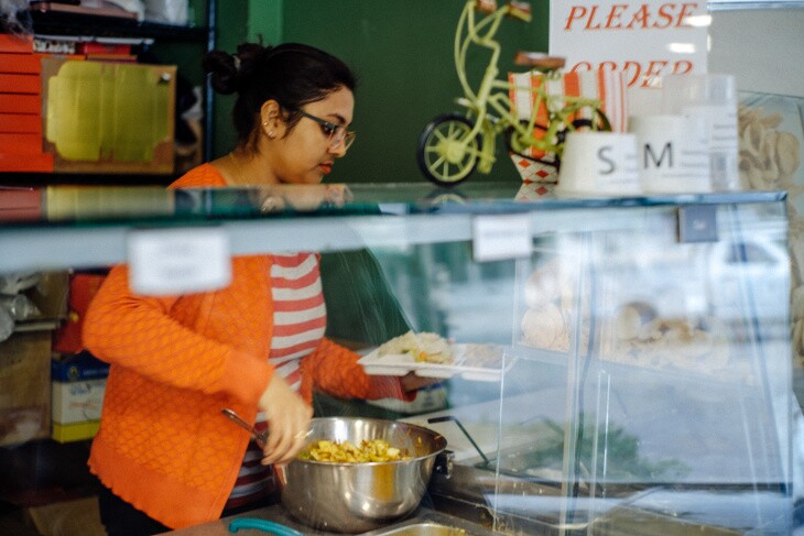 Like many small business owners, Malik can often be found working the register, serving chai and guiding customers through the grocery aisles. He is humble and quick to brush off praise. His employees often speak to me in Hindi, something I haven't experienced anywhere else in L.A. They tell me I can pay when I'm done eating, a small action but one that makes me feel like I belong here.