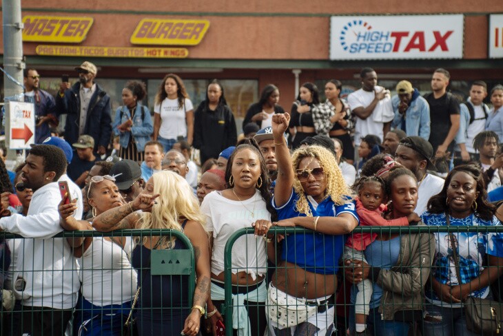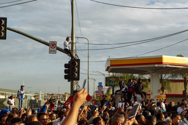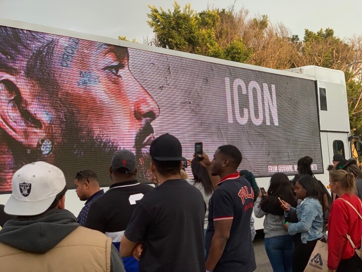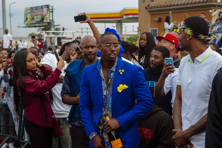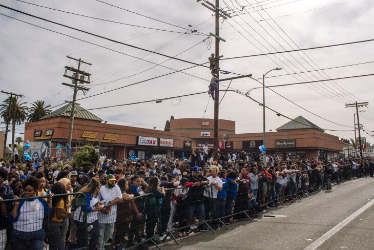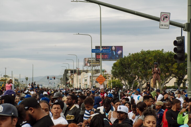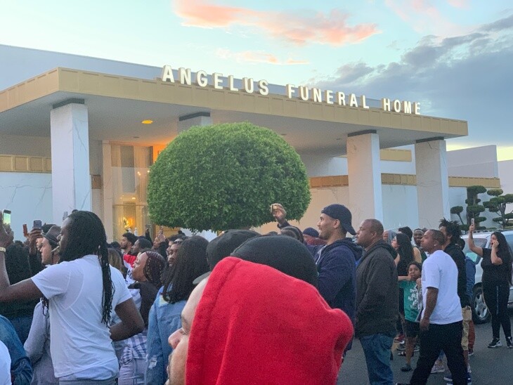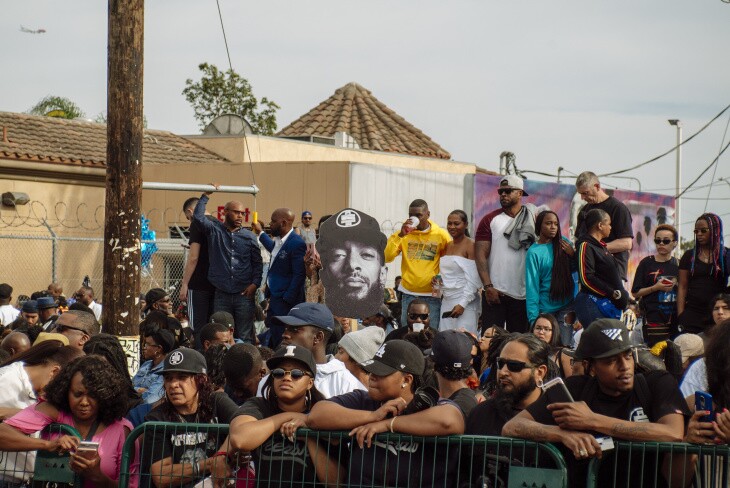 Yesterday, a hearse carrying the body of Nipsey Hussle took a 25-mile trip from Staples Center to the Angelus Funeral Home, a trip referred to as the late rapper's Victory Lap -- a nod to the name of Hussle's debut studio album. Massive crowds gathered on the streets of South Los Angeles, posting artists' tributes and celebrating the life of what many referred to as a hometown hero.