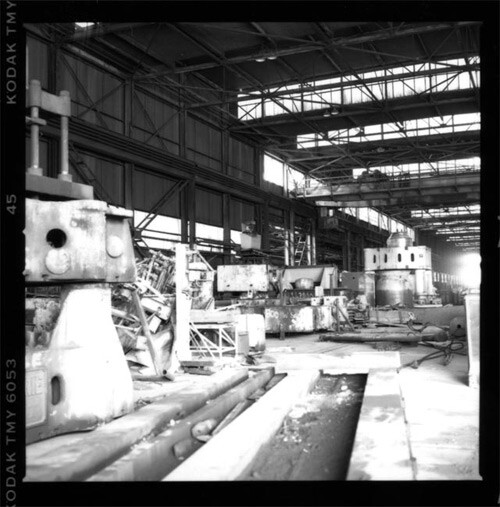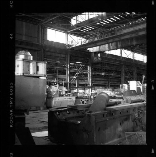 Among the innumerable colorful characters that I interacted with in Fontana was one of the best repo men in the business, who shall remain unnamed. When I found out his office was a trailer on the Kaiser lot, I hit him up to get me into the place. He could pull that off, but I would still have to avoid security patrols around the buildings. Armed with a Hasselblad, a light meter and a tripod, I managed to dodge security, several work crews, and looming rain clouds to get about 30 minutes of shooting in. Just as the first drops of rain started to fall, I got bounced by a security guy.
