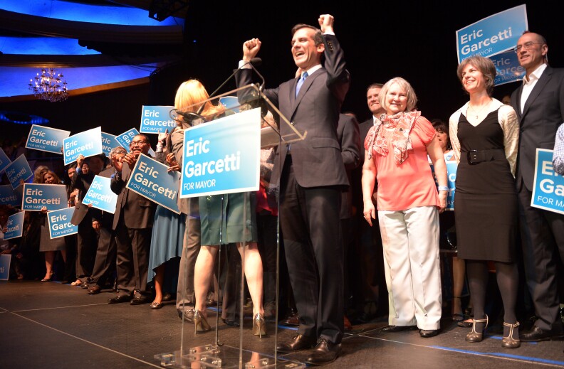 Garcetti, the son of former L.A. County District Attorney Gil Garcetti, was first sworn-in as Mayor in June 2013, after representing Silver Lake and parts of Hollywood on the city council for about a dozen years. On his path to the mayor’s office, Garcetti defeated City Controller Wendy Greuel, another moderate city hall insider, overcoming heavy spending by labor unions on her behalf.