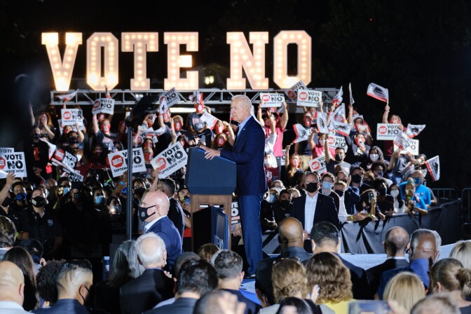 “Gavin Newsom has had the courage to lead, to stand up for science,” Biden said. “He’s been one of the leading governors in the nation protecting people and vaccinating his state.”