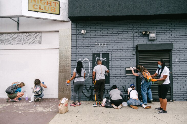 "I felt like instead of going to clean up Fairfax and Melrose, we should be cleaning up over here where the actual police brutality, poverty and inequality is happening in the black neighborhoods," Jones said.