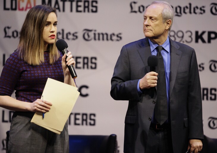 The debate was cosponsored by our newsroom and the L.A. Times and moderated by KPCC/LAist's politics reporter Libby Denkmann and the L.A. Times editorial writer Robert Greene.