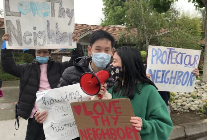 “When we see the homeless people, we don't feel safe,” said Wu, who was accompanied by a dozen other protesters. “You know, those homeless people have mental problems. They have, like, alcohol, drug problems.”