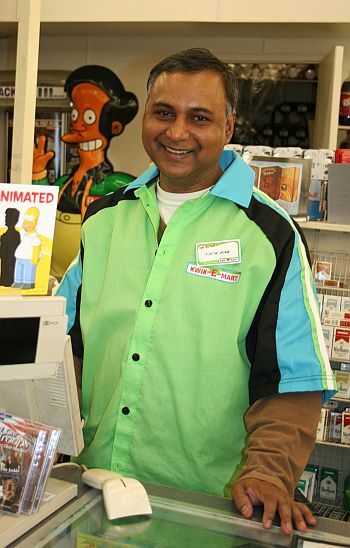 Golam, Burbank's friendly counterman, was having a lot of fun shouting, "Welcome to Kwik-E-Mart!" as each customer walked in. The other employees were rushing to re-stock cartoonishly pink donuts while the 7-11 rep made frantic calls on his cell phone demanding more Buzz cola, "Send me everything you've got! It's ALL gone. Everything."