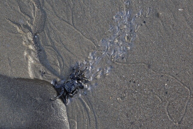 A oil-covered crab died will trying to crawl on the beach in Santa Barbara County (Photo by David McNew/Getty Images)