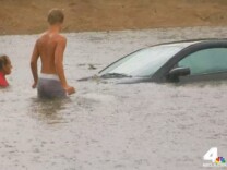 A day after flooding that damaged homes and forced water rescues in Riverside, the National Weather Service extended the warning through Monday evening.