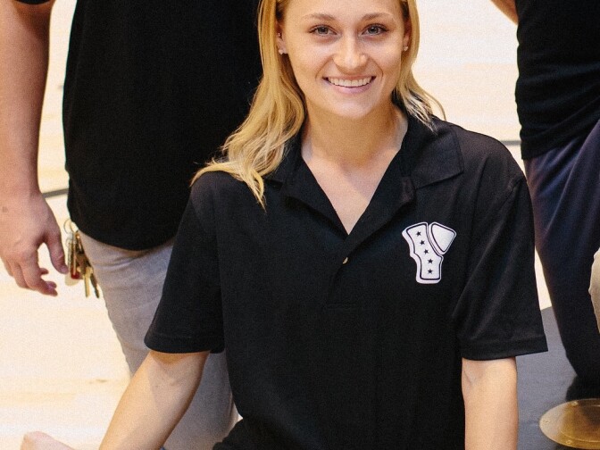 Back in the Roy Coble Gym, the Great “Y” Circus forms up into a gym-spanning circle. "The circle is a symbol of our interconnectivity, and our unity before a show," Lowery says. The troupe has one last pre-show ritual to perform. Emilie Gleisberg, the troupe’s second in command, explains. “Every single night that we perform, we all circle up, we hold hands, and we say, ‘Good, Safe, Fast, Show,’ three times — “ The troupe chants out their cheer, with a deafening roar. "And then we clap and we cheer," Gleisberg says, "and we go off behind stage to get dressed and get ready for show." Like Jenna Lowery, Emilie has been with the Great “Y” since early childhood. But this year has a special resonance for her. Not all the kids know yet, but after this show closes, Jenna Lowery will be moving on to pursue a career as a photographer. So next year, it’s Emilie’s show. “It is… a dream come true," Gleisberg says, through tears. "And I tell… WHOO! I tell everybody that. “I cannot believe that I am going to be able to put on a show of my own, in the place where I grew up, with everybody I love, including my father and my mother, [who] is part of the show. “You know, the circus, we’re here for each other, we’re a family. We make it happen. And we never let anybody fail.”