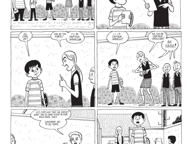 One thing that I saw in Marble Season that I did not see in Peanuts ever, I don't think, is that the characters at least in a couple scenes were pretty conscious of race. Huey's older brother Junior is accused of having a crush on a white girl. And that's the main thing: "I can't believe you have a crush on a white girl." Since it's semi-autobiographical, was that a big part of your childhood, too?