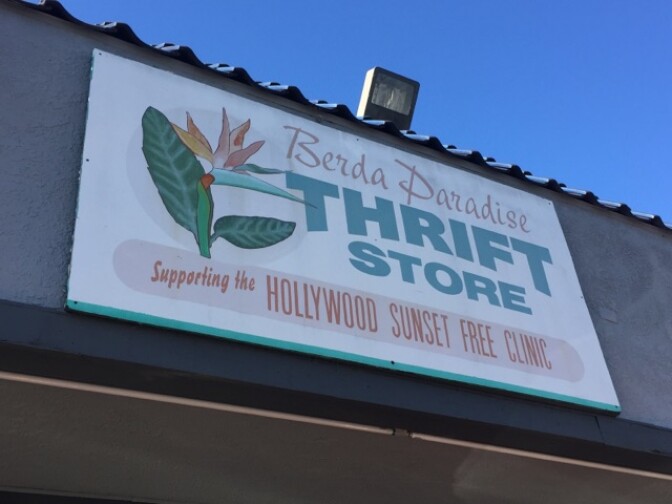 The Berda Paradise Thrift Store in Silverlake sells all sorts of clothing and wares to raise money for the Hollywood Sunset Free Clinic, one of the oldest clinics in the city. Store manager Sharion Taylor explained how they have had a symbiotic relationship with the clinic for twenty years.