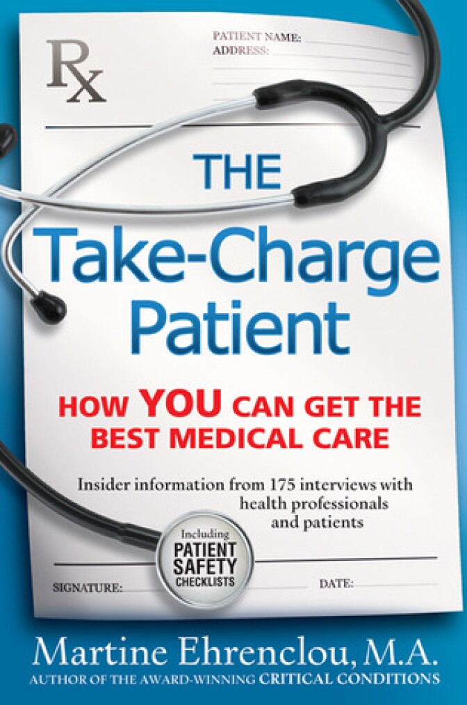 Martine Ehrenclou, author of The Take-Charge Patient: How YOU Can Get the Best Medical Care (Lemon Grove Press); award-winning author, patient advocate and speaker. Her previous books include Critical Conditions: The Essential Guide to Get Your Loved One Out Alive.
